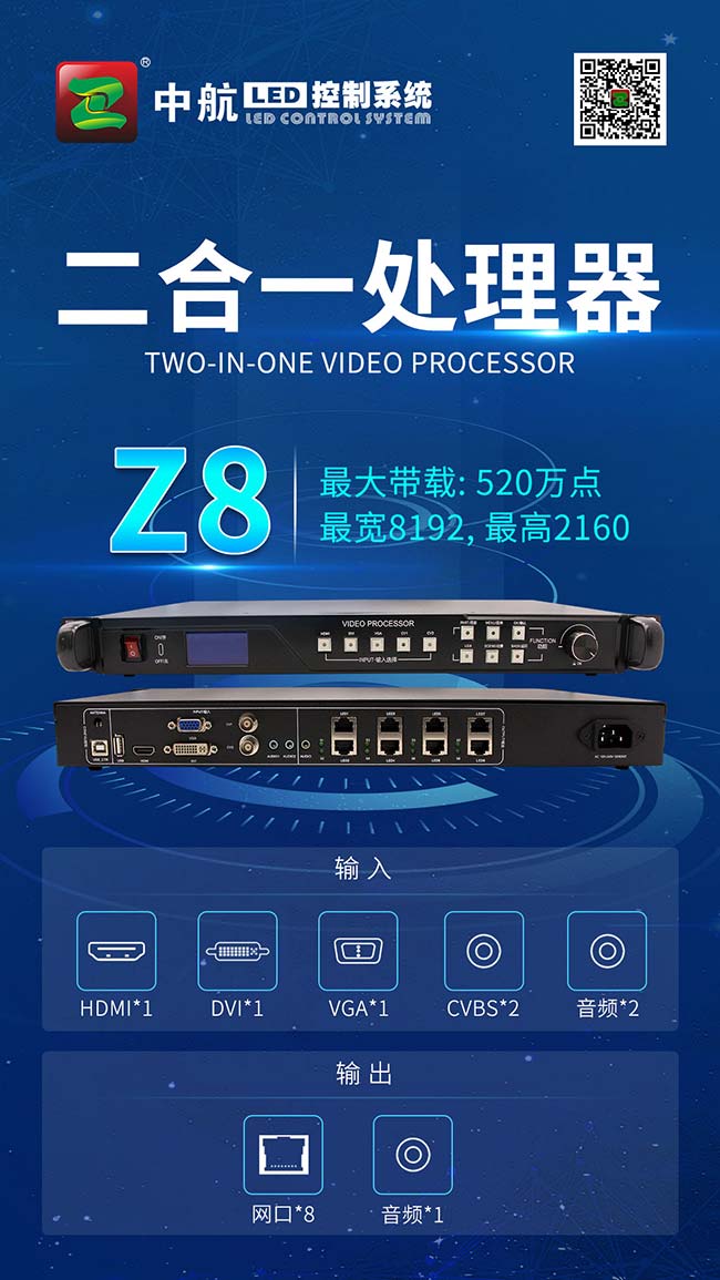 解決方案:中航二合一控制器+戰狼系列接收卡,完美帶載。