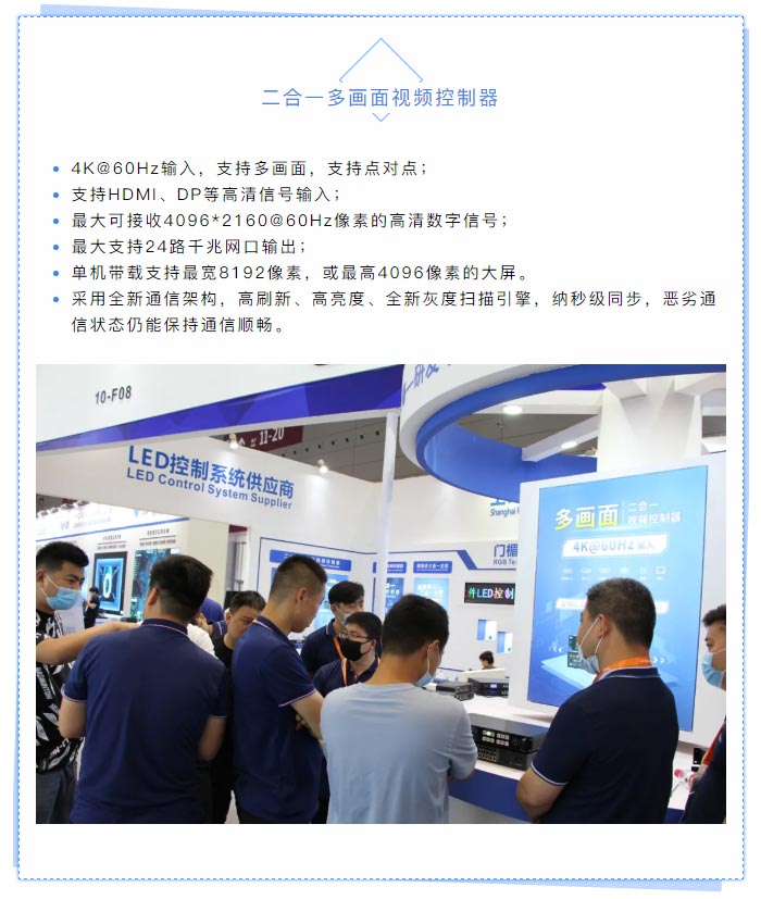 在ISLE與中光協(xié)評選中,二合一多畫(huà)面視頻控制器系列產(chǎn)品,憑借出色的性能,榮獲:“顯示優(yōu)秀產(chǎn)品獎”。
